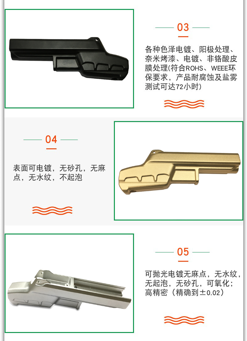- 压铸件可保证无水纹,不起泡,不渗水,不漏气
