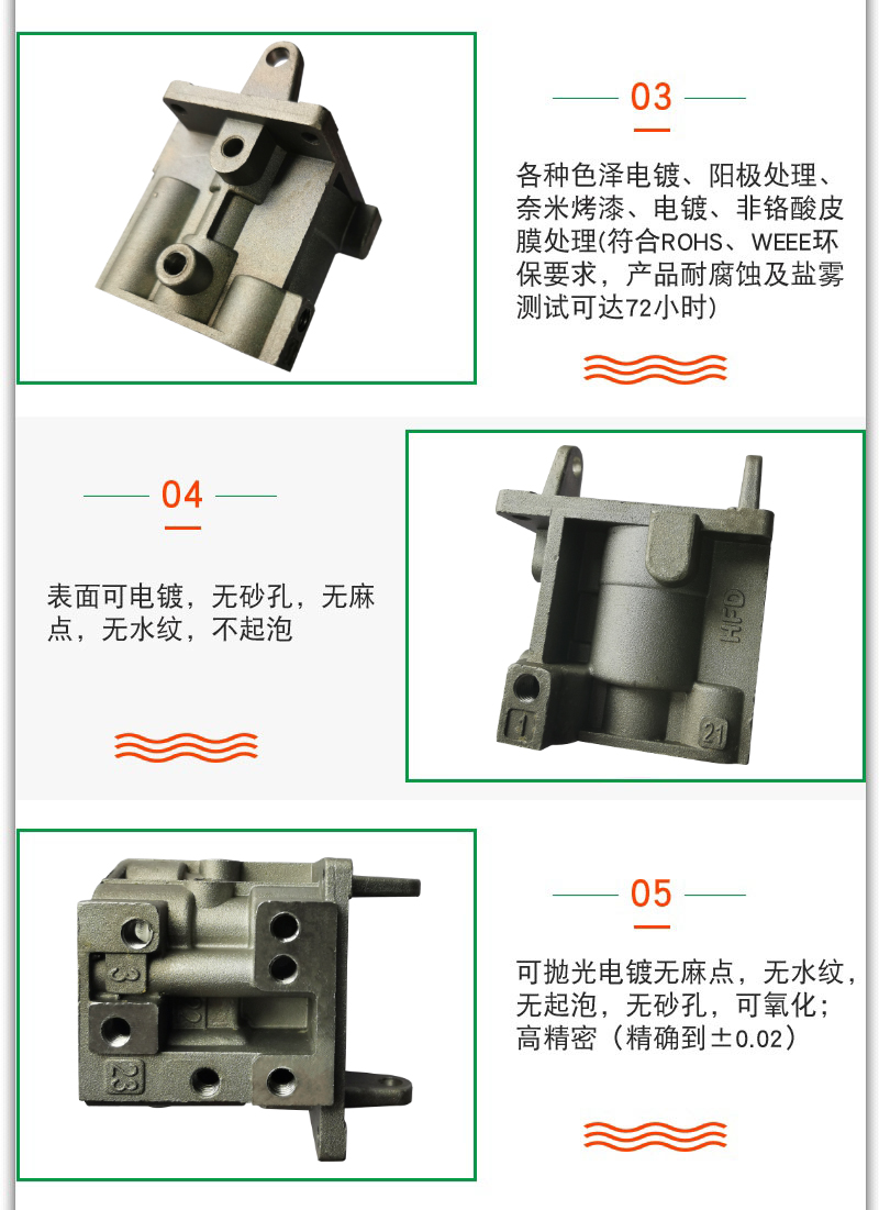 - 压铸件可保证无水纹,不起泡,不渗水,不漏气