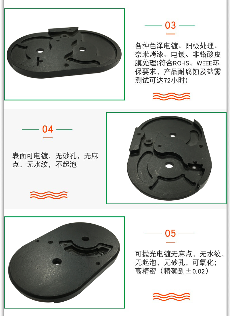 - 压铸件可保证无水纹,不起泡,不渗水,不漏气