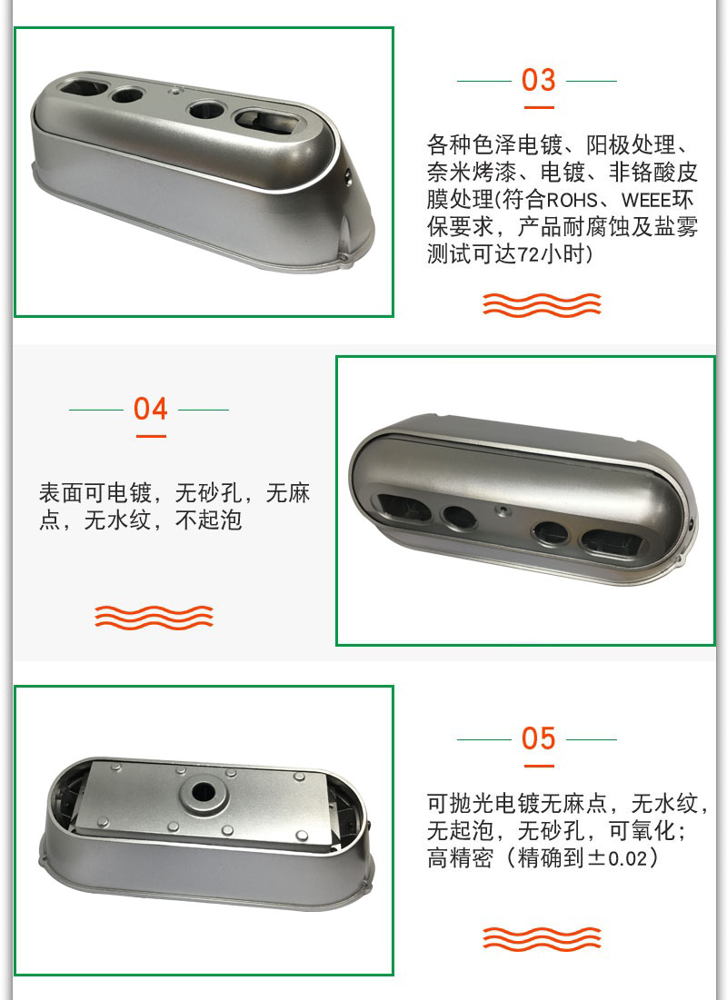 - 压铸件可保证无水纹,不起泡,不渗水,不漏气