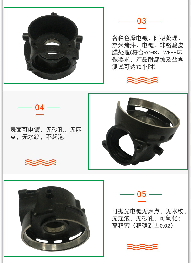 - 压铸件可保证无水纹,不起泡,不渗水,不漏气