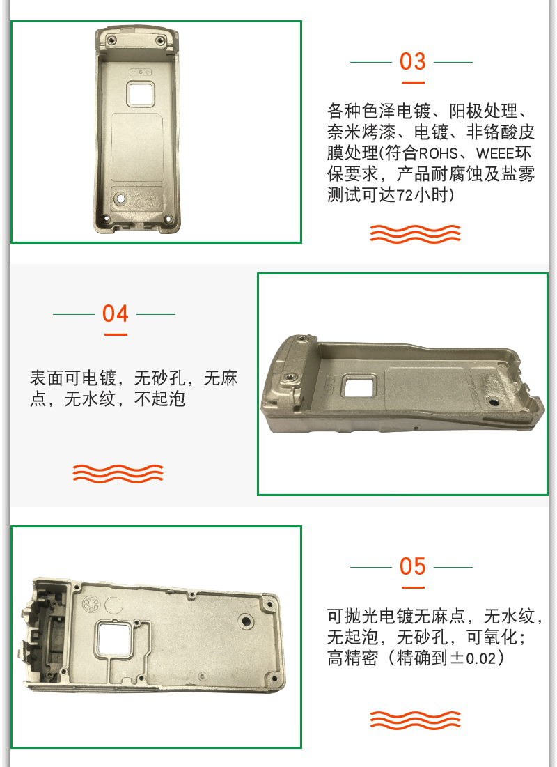 - 压铸件可保证无水纹,不起泡,不渗水,不漏气