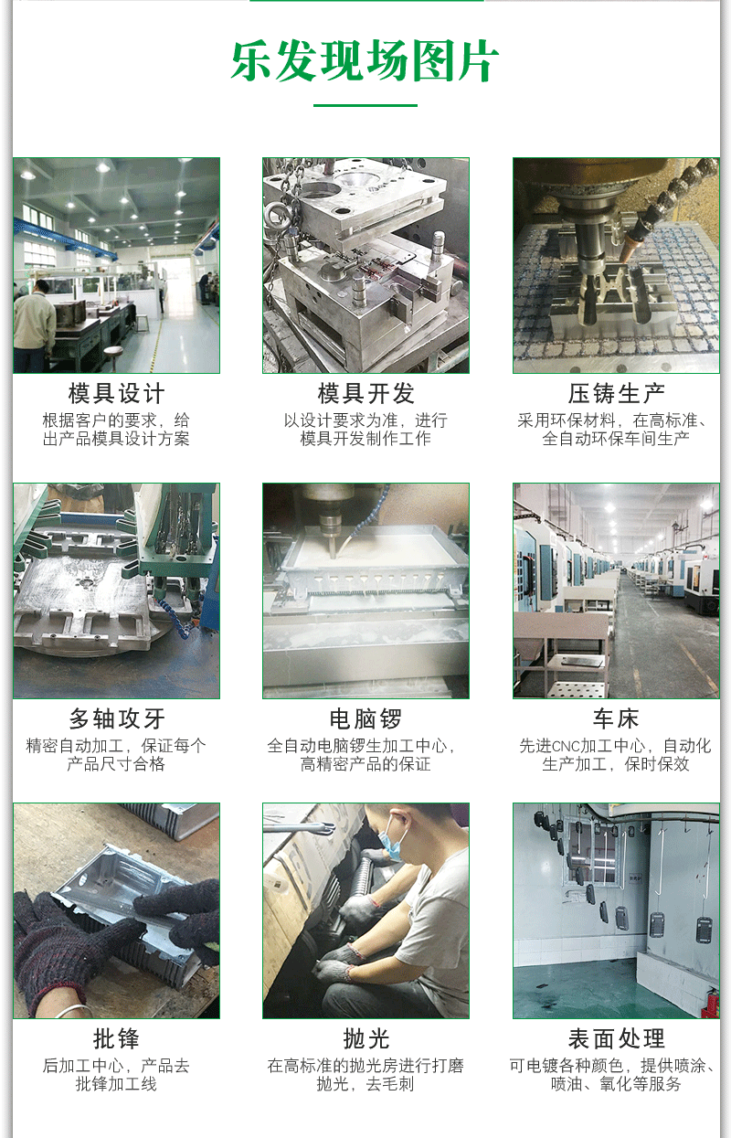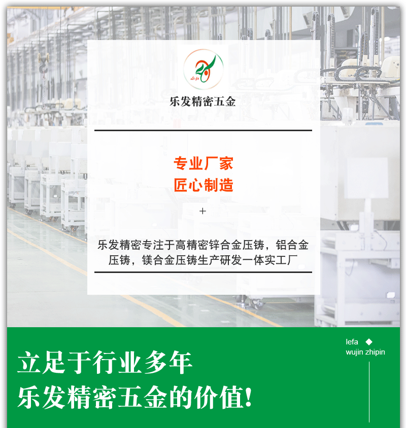 专注多年从事精密锌合金压铸,铝合金压铸,镁合金压铸,铜压铸生产加工及锌合金压铸模具,铝合金压铸模具,镁合金模具压铸,铜压铸模具设计与开发。拥有各种主要精密压铸加工设备具备多名高素质的工程人员